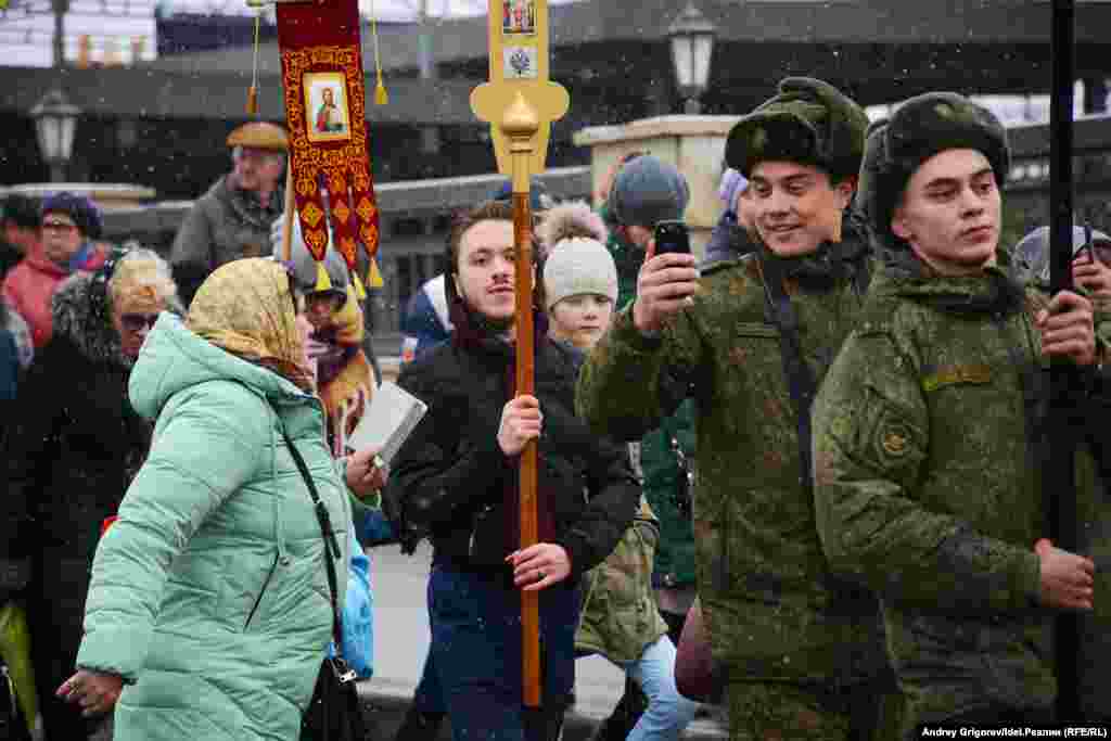 Главное богослужение в честь праздника состоялось утром в Благовещенском соборе Казанского Кремля. Оттуда участники крестного хода двинулись традиционным уже маршрутом вокруг Кремля, чтобы завершить шествие в Крестовоздвиженском соборе — считается, что в месте, на котором стоит храм, и была обретена в 1579 году Казанская икона Божьей матери.