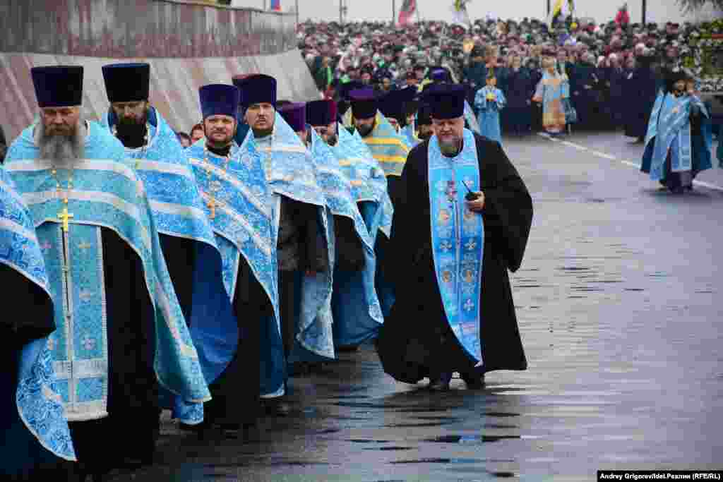Главное богослужение в честь праздника состоялось утром в Благовещенском соборе Казанского Кремля. Оттуда участники крестного хода двинулись традиционным уже маршрутом вокруг Кремля, чтобы завершить шествие в Крестовоздвиженском соборе — считается, что в месте, на котором стоит храм, и была обретена в 1579 году Казанская икона Божьей матери.