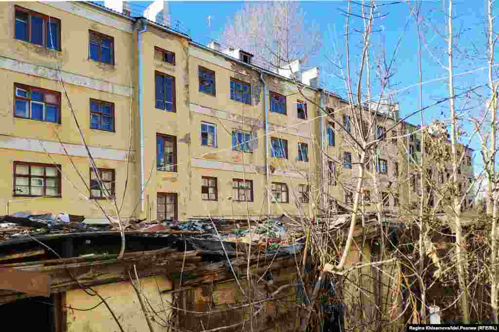 Еще год назад все дома были заселены. Кто-то до этого уже успел оформить квартиры в собственность, кто-то жил по договору найма. Еще летом прошлого года в квартирах жили молодые семьи с детьми, пожилые и инвалиды. Жизнь в корпусах на Назарбаева, 35 кипела. Это продолжалось до тех пор, пока власти не решили признать дома аварийными, а жителей расселить. Этим летом во всех четырех корпусах осталась только одна семья — Марасинских. Они отказывались переселяться на условиях властей — в дом у кладбища в Юдино, без батарей отопления и сантехники. Несколько месяцев назад их насильно выселили.