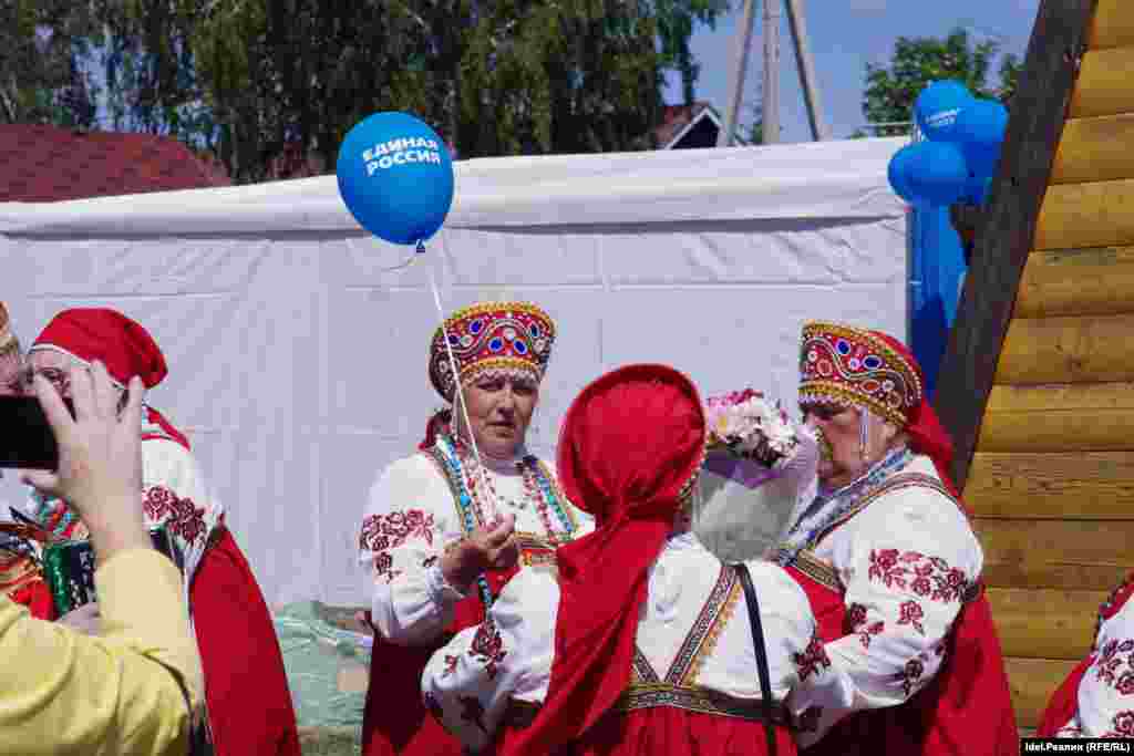 Не менее бойко, чем торговля, шла избирательная кампания. Это "Единая Россия", у которой в это воскресенье проходят праймериз, решила выйти в народ, разбавив национальные костюмы надувными шариками с логотипами партии.