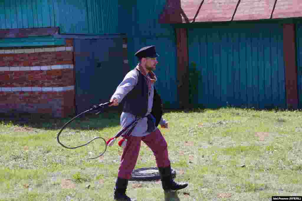 Зрителей развлекали артисты, кажется, со всего Татарстана. Были и приезжие издалека. Например, девушка из Ямало-Ненецкого автономного округа. Основная программа развернулась на двух площадках. Официальная сцена — перед местным домом культуры. Здесь соорудили посадочные места. Вторая — чуть поодаль — была ближе к народу. Зрители, отлично знающие народные песни, подпевали исполнителям и пускались в пляс. Любители легкого экстрима могли испытать свои силы в управлении плетью.