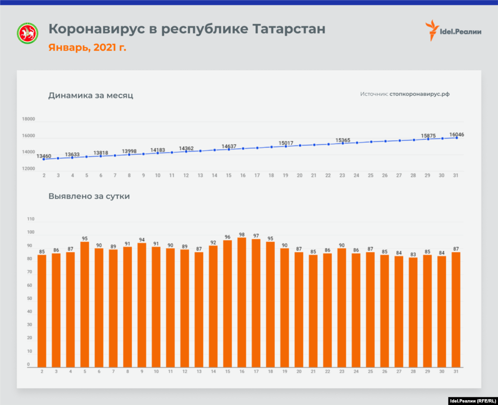 В январе почти во всех республиках и областях ПФО наблюдался спад заболеваемости коронавирусной инфекцией (кроме Пензенской области).