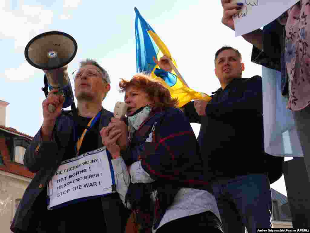 Очередной антивоенный митинг на Замковой площади в Варшаве 21 мая был посвящен памяти жертв российской агрессии в Украине. Россияне, выступающие против войны, кроме плакатов и флагов держали в руках снимки украинцев, пострадавших в результате действий армии РФ.